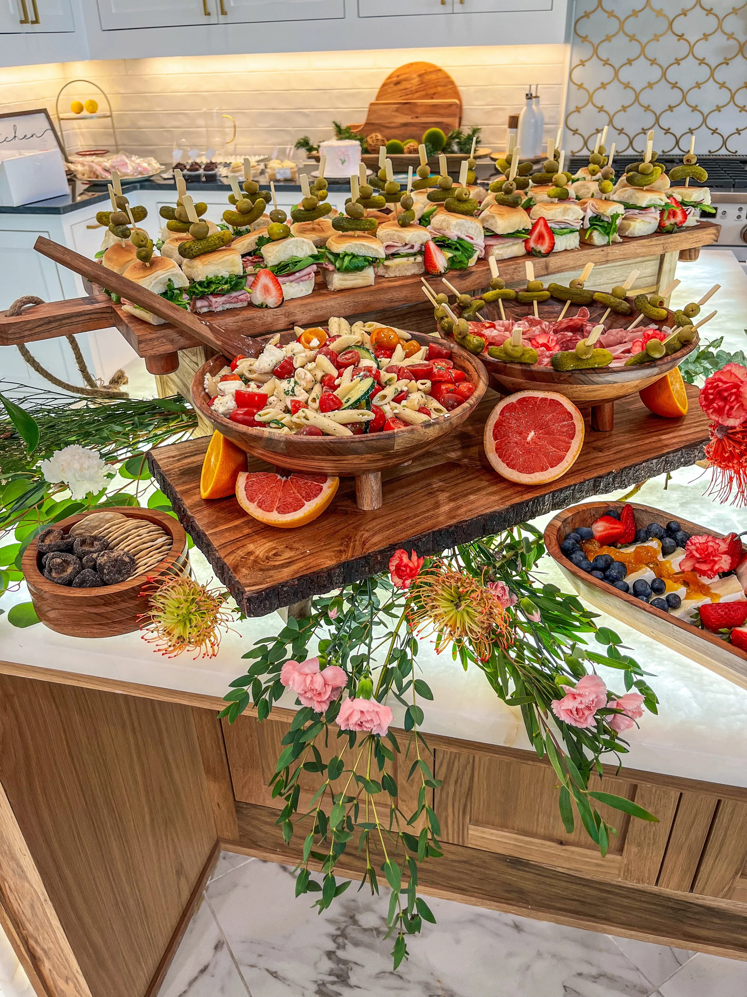 A multidimensional grazing experience, enhancing every ingredient to its fullest potential. Florals are included to elevate the presentation. If we aren’t staying at the event we will swing by afterwards to pick up our boards.